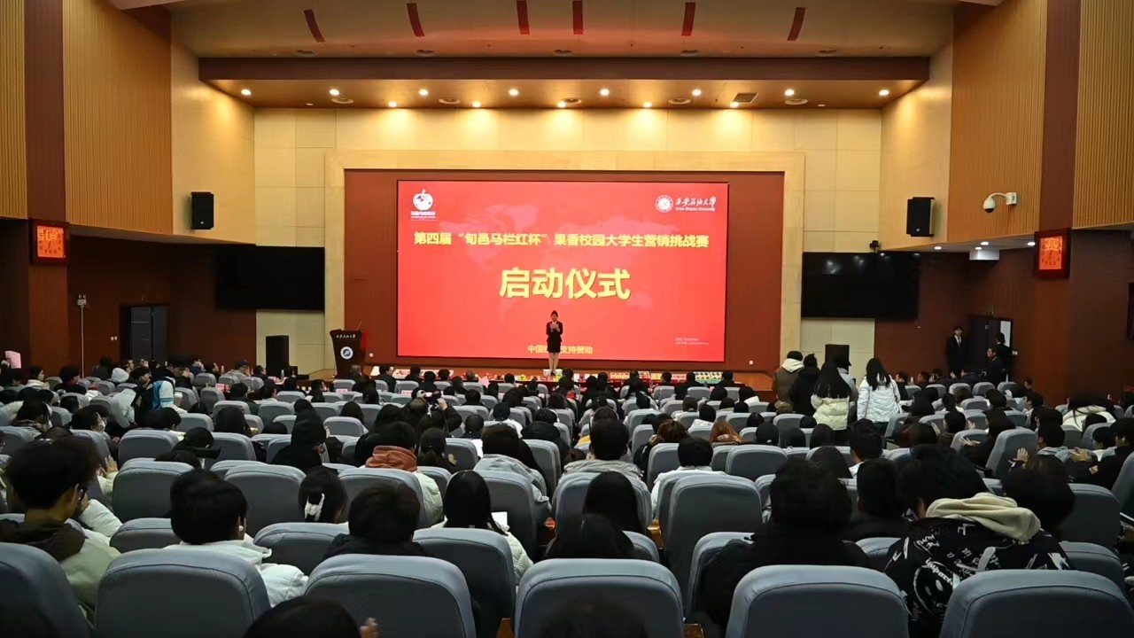 12月18日,第四屆“旬邑馬欄紅杯”果香校園大學生營銷挑戰賽啟動儀式在我校鄠邑校區弘石學術報告廳成功舉辦。本次營銷挑戰賽由西安石油大學經濟管理學院、旬邑縣人民政府、共青團西安石油大學委員會共同舉辦。我校總會計師樊曉民出席會議并致辭,咸陽市政府黨組成員、中國銀行總行定點幫扶工作隊隊長葉新階,旬邑縣委副書記陳永勝,中國銀行咸陽分行行長劉美剛,校團委、經濟管理學院相關負責同志,新聞媒體、供應商代表,各參賽隊伍師生代表近400余人參加本次啟動儀式。