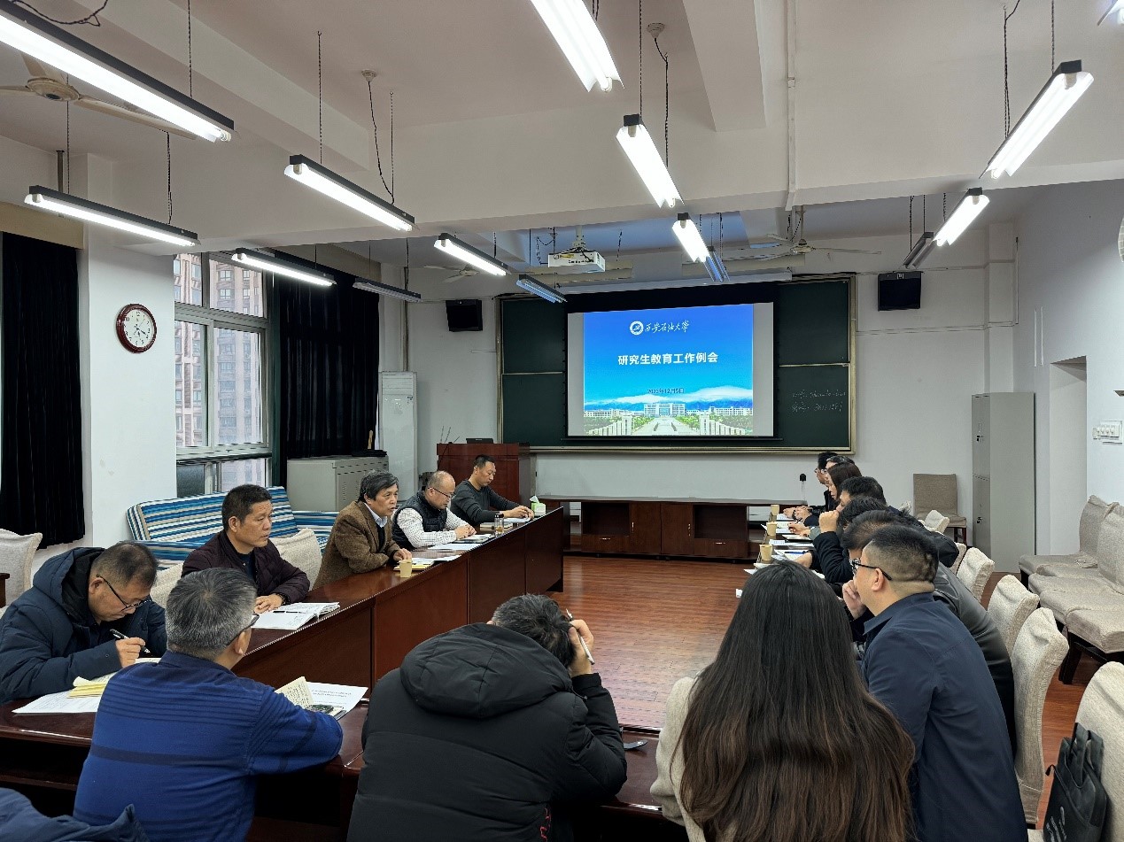 研究生教育工作例會上,楊戰社結合近期工作,要求研究生院和各研究生培養學院要充分認識到研究生招生考試的政治性和嚴肅性,進一步樹牢底線思維,從嚴從細做好各環節工作,確保我校考點各項工作順利開展。他指出,研究生教育是立德樹人的重要內容,也是推進學校高質量發展的重要基礎,要切實梳理好、妥善解決好各類問題,維護好學校正常教學秩序。會上,研究生負責人就研究生創新與實踐能力培養計劃改革、導師隊伍建設、綜合教育改革項目、學術道德等方面工作進行了安排。各學院負責人,學校學位授權審核工作辦公室全體工作人員參加會議。