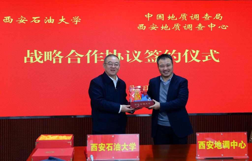 常江簡要介紹了學校的基本情況、區位優勢以及職責使命,并誠摯感謝西安地質調查中心一直以來對我校各項事業的支持和幫助。他談到,雙方發展歷史有很多相似之處,合作前景廣闊,互補性強,此次合作協議的簽署對于推進學校高質量發展有著重要意義。希望雙方在共同推動中國-上合多種能源資源勘探開發國際聯合實驗室、數字鄂爾多斯盆地等在內的國家級和部級科技創新平臺建設,以及科技項目聯合申報、碩博士生聯合培養、實驗設備共享等方面加強合作,共同為服務共建“一帶一路”倡議和國家能源戰略作出更大貢獻。