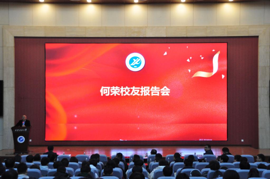 儀式結束后,何榮校友為同學們作了一場精彩的報告。他主要和同學們分享了AI時代如何度過大學時光,提出了自己對未來的技術、教育、知識的思考,他希望學弟學妹們學會使用人工智能助手,提高學習效率,拓寬眼界和知識面。他回憶自己在母校時的美好時光,表示學校的教育教導成就了今天的自己,正是學校的嚴格要求使自己能夠養成良好的習慣,受益終身。他鼓勵大家在校期間要多參加各項活動、多學習、多讀書,努力提高溝通交流、書面表達、人際交往等能力,緊盯目標奮力前行。報告會的氣氛熱烈、內容豐富,廣大同學們受益匪淺。