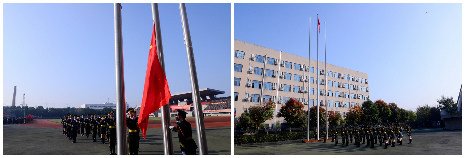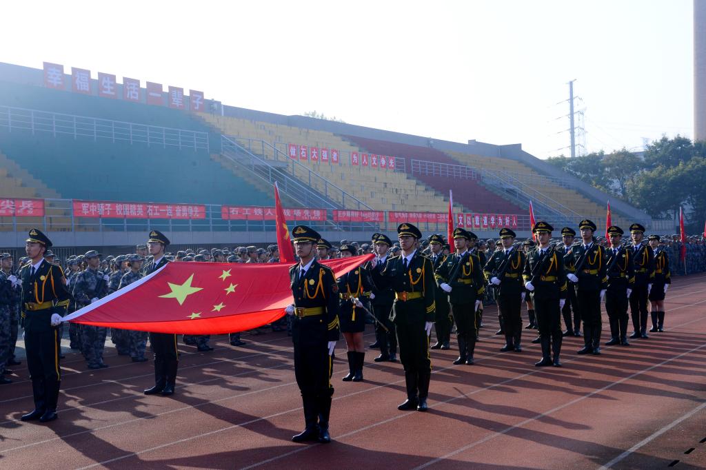 軍訓匯報表演前,學校舉行了莊嚴的升國旗儀式。