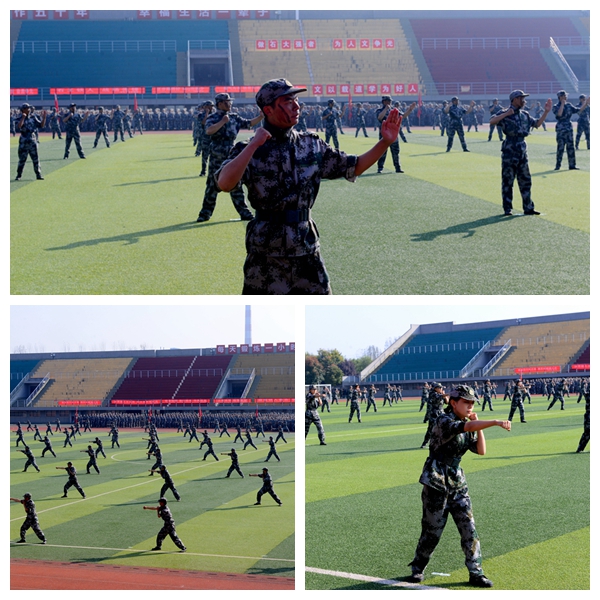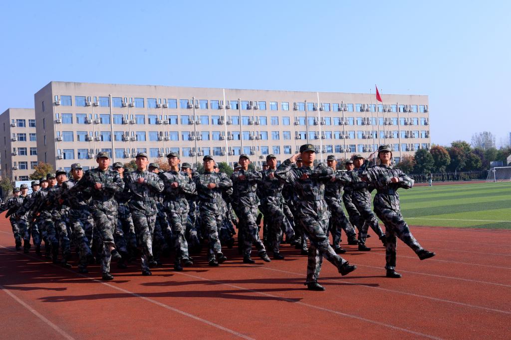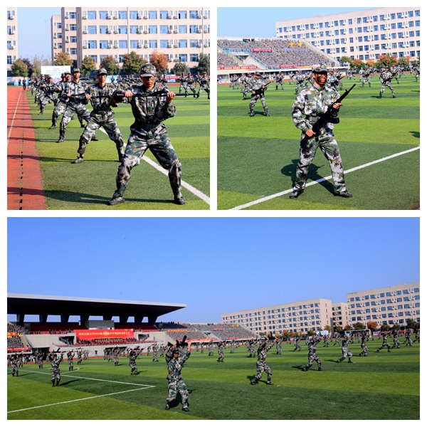 伴隨著激昂的進行曲和嘹亮的口號,2023級本科生分13個方陣,邁著整齊矯健的步伐,精神飽滿地經過主席臺,向全校師生展示隊列訓練成果。隊列成果展示后,還進行了格斗術、刺殺操等表演科目的展示。