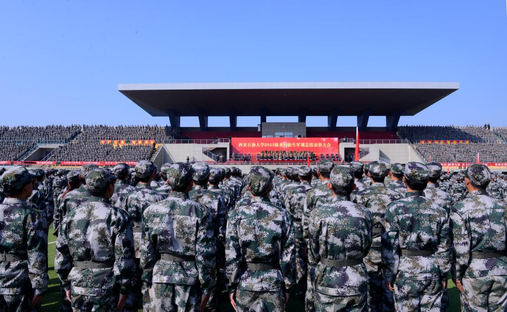 10月22日上午,我校2023級本科生軍訓總結表彰大會在鄠邑校區東體育場舉行。校黨政領導常江、張木、張君濤,中國人民解放軍某部張海偉中校出席大會。軍訓領導小組成員單位負責人,全體參訓干部、教官及2023級本科生共4800余人參加大會。大會由副校長張君濤主持。