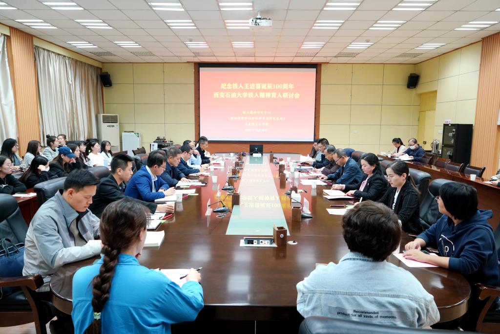 10月10日下午,學校紀念鐵人王進喜誕辰100周年鐵人精神育人研討會在雁塔校區西階會議中心第一會議室舉行。校黨委副書記張木、副校長張君濤出席研討會,全國、全省高校黃大年式教師團隊代表,省級教學名師代表,省級、校級思政“大練兵”教學標兵代表以及黨委教師工作部、教務處、研究生院、馬克思主義學院負責人和師生代表50余人參加會議。本次研討會由陜西省哲學社會科學重點研究基地——校鐵人精神研究中心和馬克思主義學院主辦,會議由馬克思主義學院院長張海濤主持。