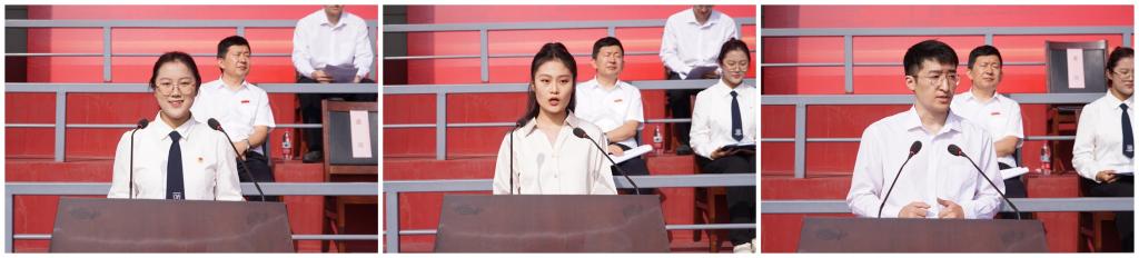 電子工程學院2023級高怡然同學代表全體本科新生發言,石油工程學院2023級博士研究生楊靜雯同學代表全體研究生新生發言,地球科學與工程學院2021級碩士研究生王俊杰同學代表全體在校學生發言。