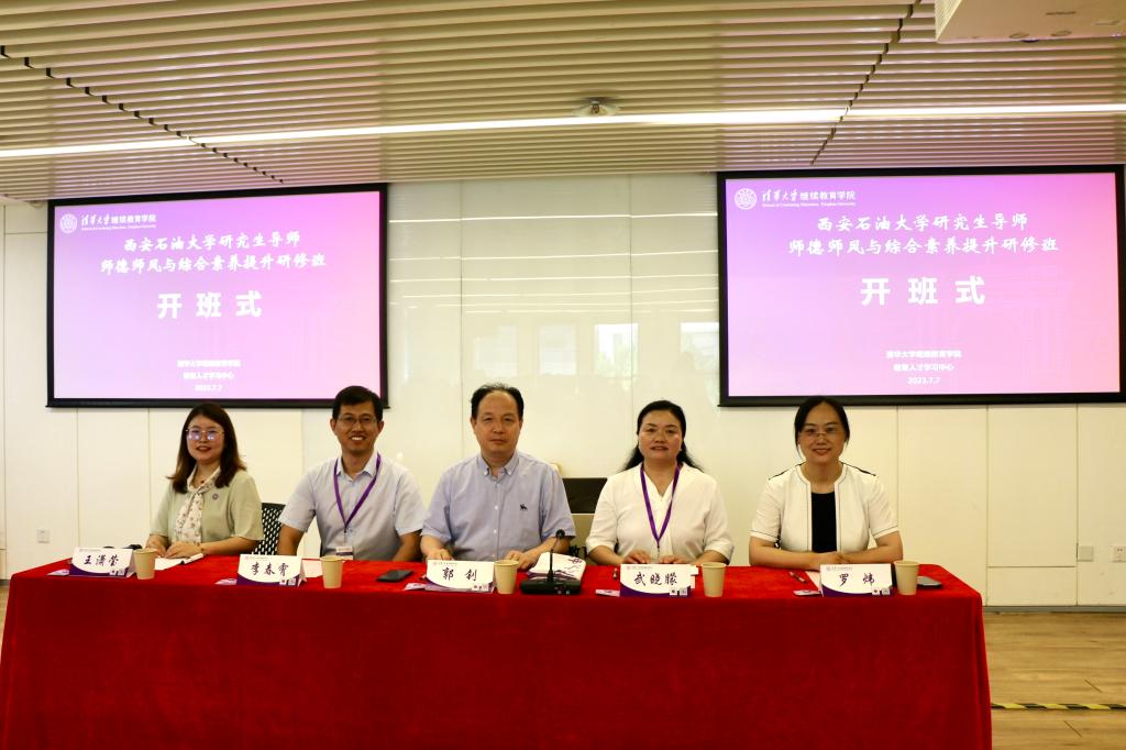 清華大學繼續教育學院副院長郭釗對全體學員的到來表示熱烈歡迎。他表示,清華大學“自強不息、厚德載物”的校訓,“行勝于言”的校風,“中西融會、古今貫通、文理滲透”的辦學風格和“愛國奉獻、追求卓越”的光榮傳統是學校發展進步的強大動力和不竭源泉,清華大學和西安石油大學的校訓中都有“自強不息”之意,象征著勇往直前、追求卓越的學習精神。他希望全體學員能夠帶著“為什么學”“學習什么”“怎么去學”這三個問題投入到接下來的研修學習中去,在學習過程中要全情投入、認真感悟、加強交流,以本次學習為契機,深入了解校園文化,深切感悟清華精神,將所學所獲服務于西安石油大學各項事業的發展之中。