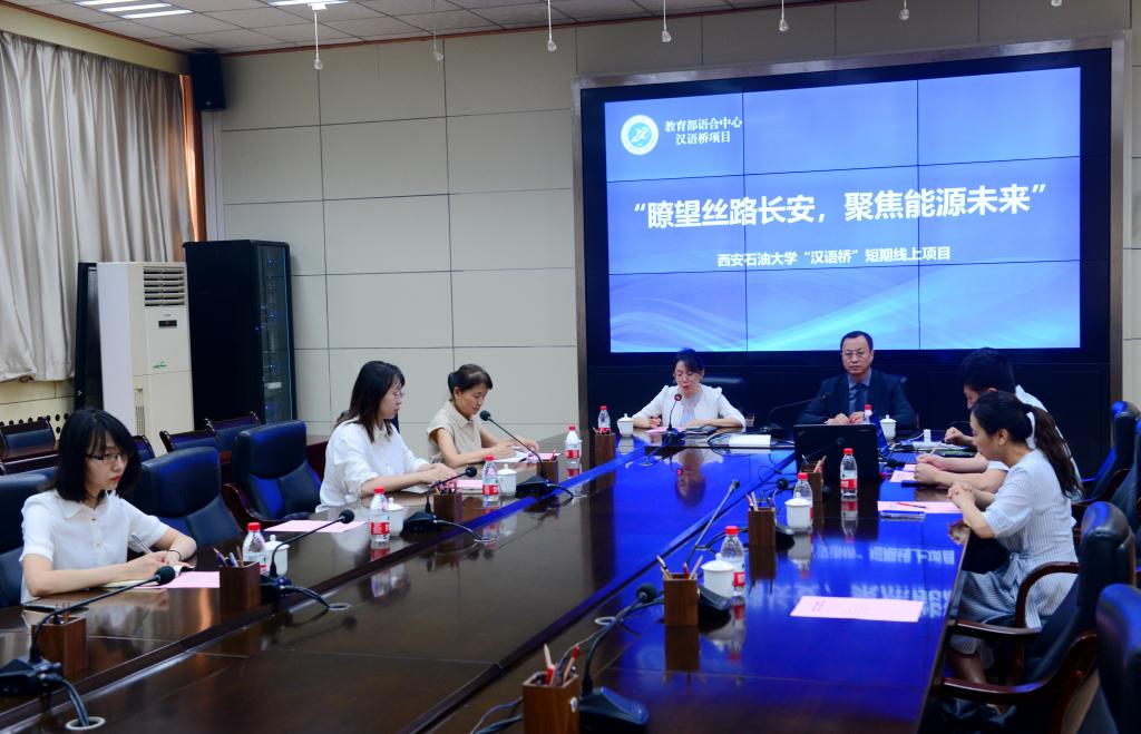“漢語橋”短期項目是教育部中外語言交流合作中心主辦的品牌化短期來華留學項目,旨在促進國際學生對中國文化的了解,激發學習中文的熱情。由我校承辦的以“瞭望絲路長安,聚焦能源未來”為主題的短期項目,旨在通過空中“漢語橋”,一方面幫助學員在云端走進中國、走進古城西安,從語言、歷史、文化等各方面了解中華文明;另一方面從能源發展、石油精神等方面走近中國石油工業,了解當代中國能源企業的精神內核。