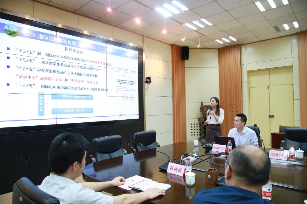 國際教育學院副院長秦璟詳細介紹了學校國際化與來華留學工作的相關情況及近幾年取得的成績,其中我校開展的中塔、中吉校企合作培養項目和牽頭推動的土庫曼斯坦“魯班工坊”建設項目,得到了僑聯一行的高度關注和贊賞。