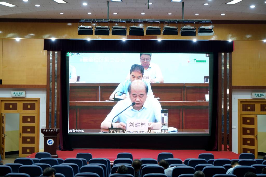 6月28日、29日,我校在雁塔校區和鄠邑校區同時設置分會場,同步組織參加由省委教育工委主辦的全省高校領導干部學習貫徹習近平總書記在聽取省委和省政府工作匯報時的重要講話精神專題學習班,學校全體校領導、處級干部參加培訓。省委教育工委書記劉建林主持開班式并作開班動員講話,省委教育工委委員、省教育廳副廳長王海波主持結業式并作總結講話。