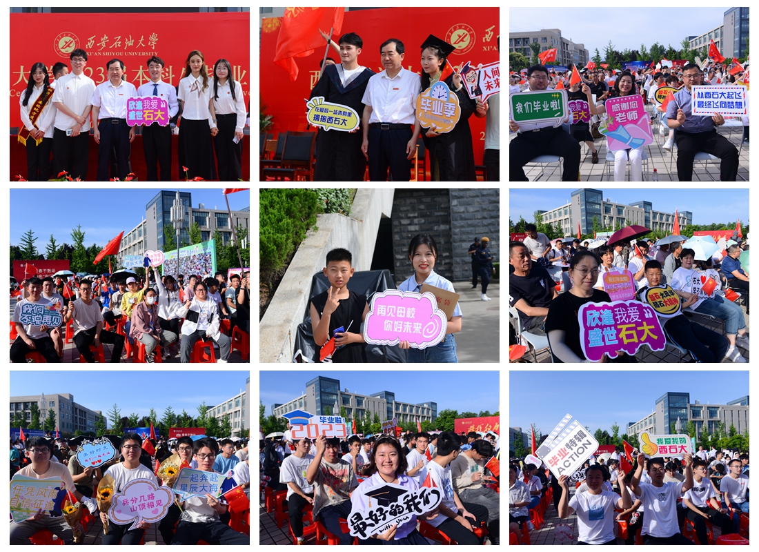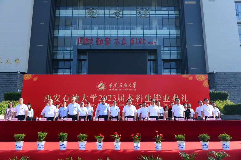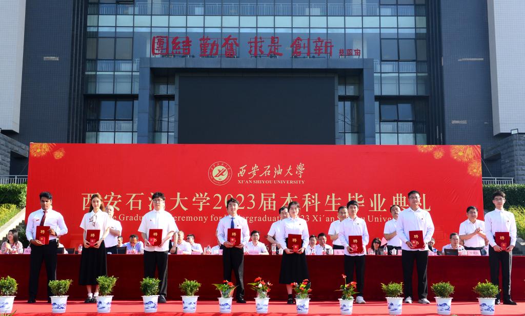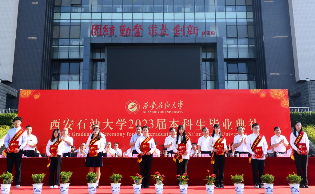校黨委副書記、紀委書記、監察專員李延平宣讀了《西安石油大學關于表彰2023屆優秀畢業生的決定》,副校長陳軍斌宣讀了《西安石油大學關于2023屆本科學生準予畢業、頒發畢業證和授予學士學位的決定》,副校長程永清宣讀了《西安石油大學校友總會關于聘任2023屆年級校友理事的決定》。與會校領導為志愿服務西部計劃、榮獲優秀畢業生榮譽稱號的學生代表頒發了榮譽證書并贈送了“原油”印章紀念品,為年級理事代表頒發了聘任證書和紀念品。