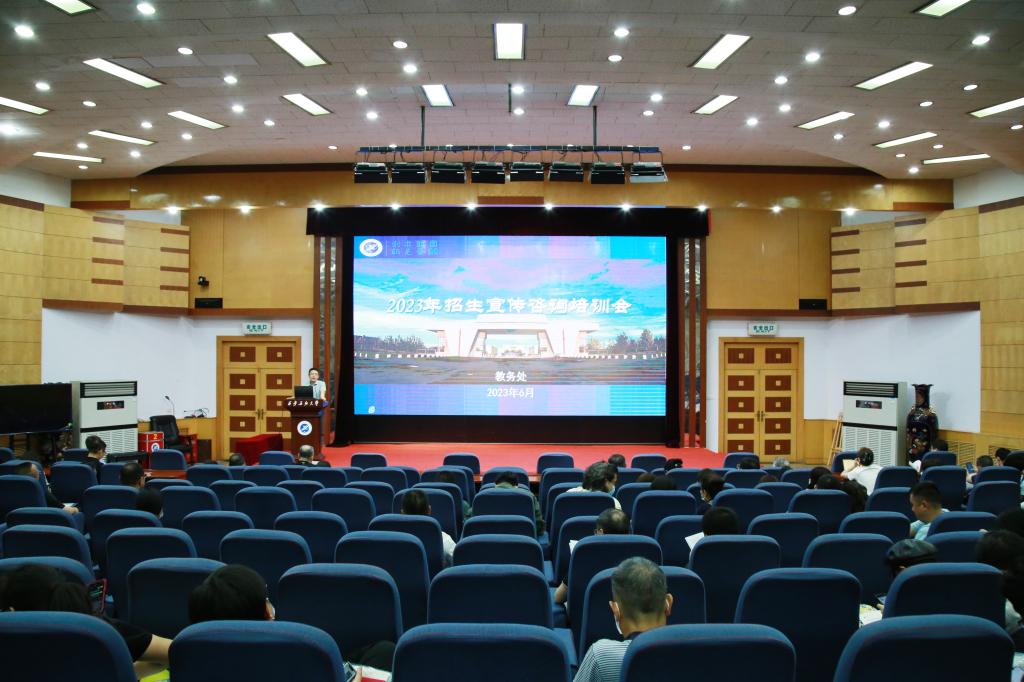6月16日下午,我校2023年本科招生宣傳工作培訓會在雁塔校區學術報告廳舉行。副校長陳軍斌出席會議并講話,院(系)招生宣傳組組長、成員及參與招生宣傳的老師參加了會議。會議由教務處處長張君濤主持。