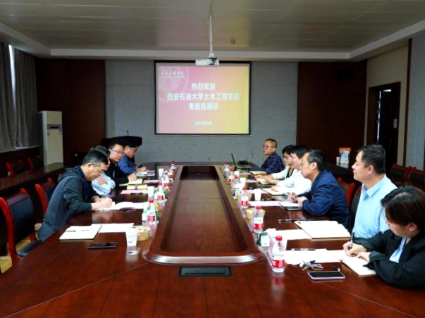 為高標準高質量開展學習貫徹習近平新時代中國特色社會主義思想主題教育,深入落實習近平總書記來陜考察重要講話重要指示,扎實開展調查研究,5月24日至25日,副校長楊戰社率隊赴西安理工大學、西安工業大學走訪調研,分別與西安理工大學土木建筑工程學院黨委書記趙欽,西安工業大學建筑工程學院黨委書記劉慧萍、院長黃華等領導進行交流座談。