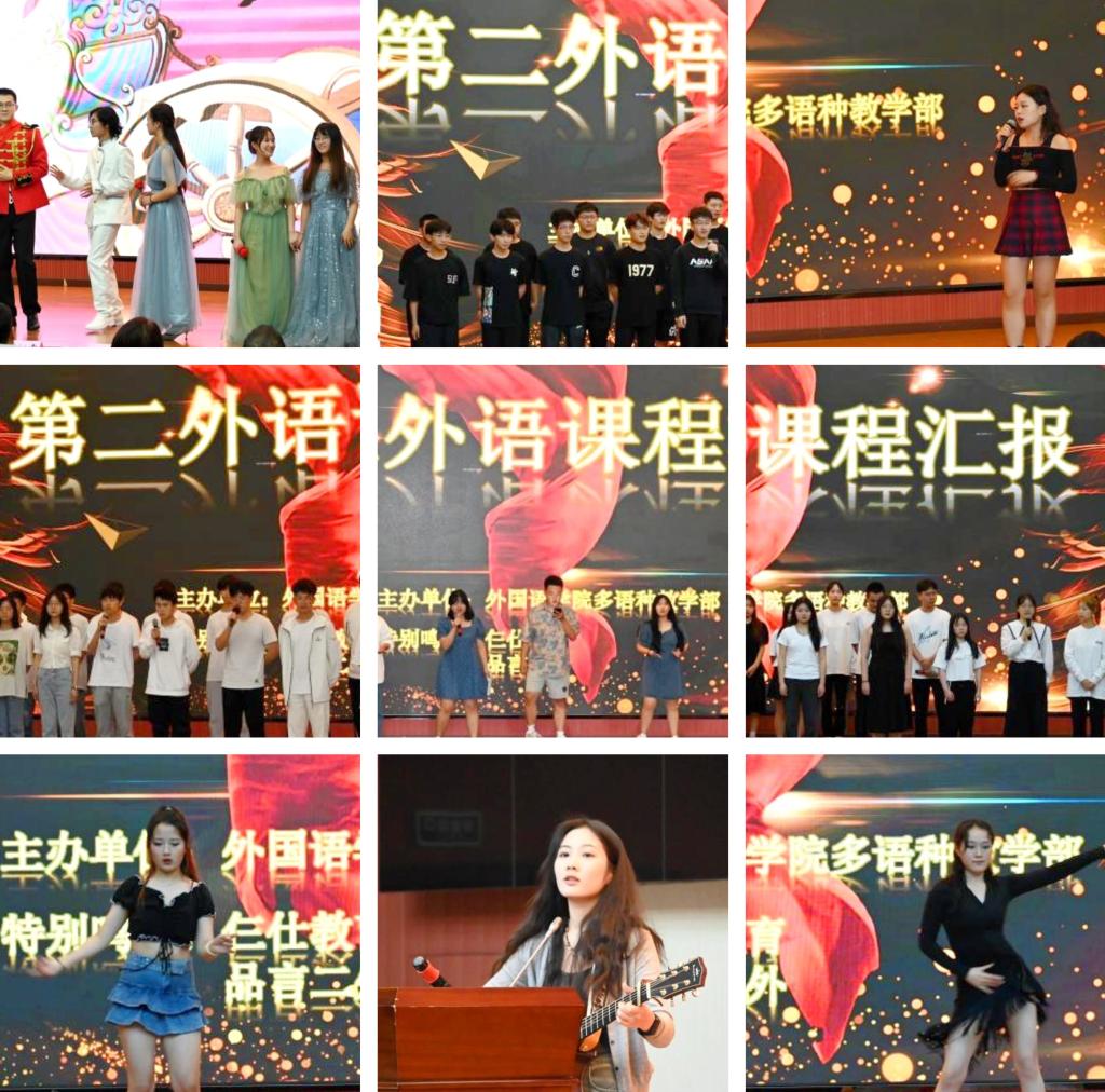 本次課程匯報在外國語學院多語種教學部教師們的精心組織和全校學習7種第二外語同學們的積極編排下,為全校師生帶來了一場國際化多語種的視聽盛宴,有效展現了我校第二外語的教學成果。匯報會上,多語種教學部全體教師上臺與觀眾見面,介紹學校第二外語人才培養理念、課程開設情況與學生學習情況。