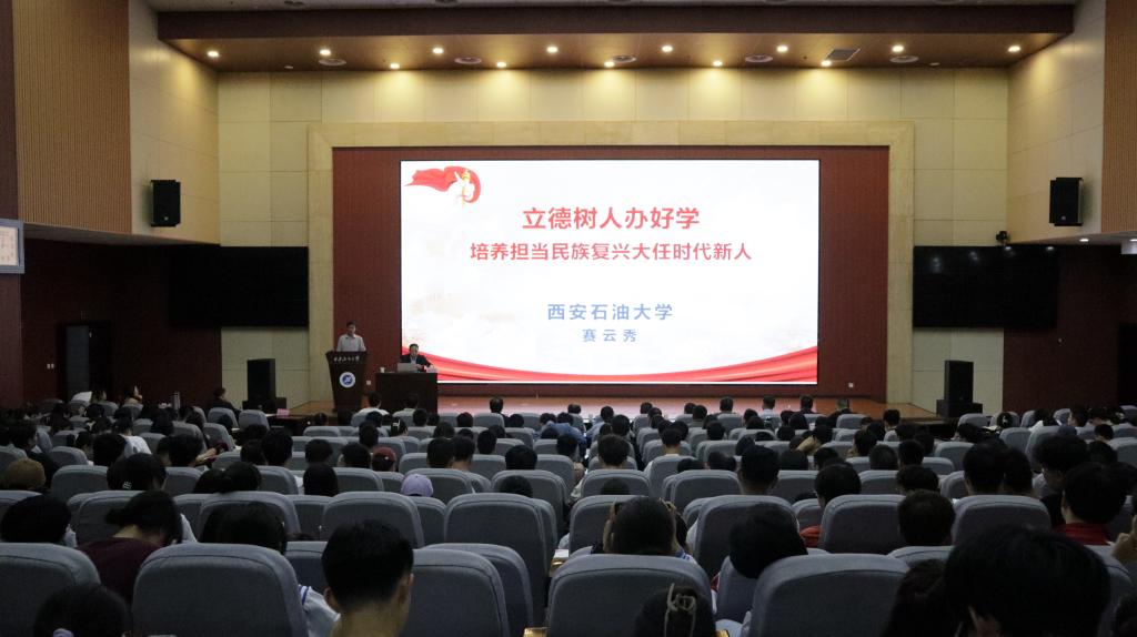 6月1日下午,學校在鄠邑校區弘石學術報告廳舉行校領導講授學習貫徹習近平新時代中國特色社會主義思想主題教育專題黨課活動,校黨委書記賽云秀為研究生黨員講授了題為《立德樹人辦好學 培養擔當民族復興大任時代新人》的專題黨課。專題黨課由副校長蘇文甫主持。
