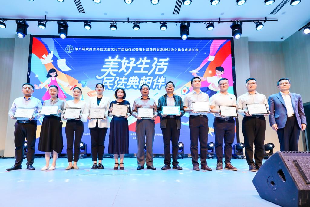 會上,主辦單位對第七屆陜西省高校法治文化節獲獎成果進行了表彰,我校選送推薦、黨委學生工作部申報的“‘喜迎二十大奮進新時代,爭做當代優秀大學生’新生入學法治教育活動”榮獲“十佳普法創新活動”優秀作品獎。陜西省紀委監委駐省司法廳紀檢監察組組長、廳黨組成員鄭建山為“十佳創新普法活動”優秀作品代表頒發榮譽證書。