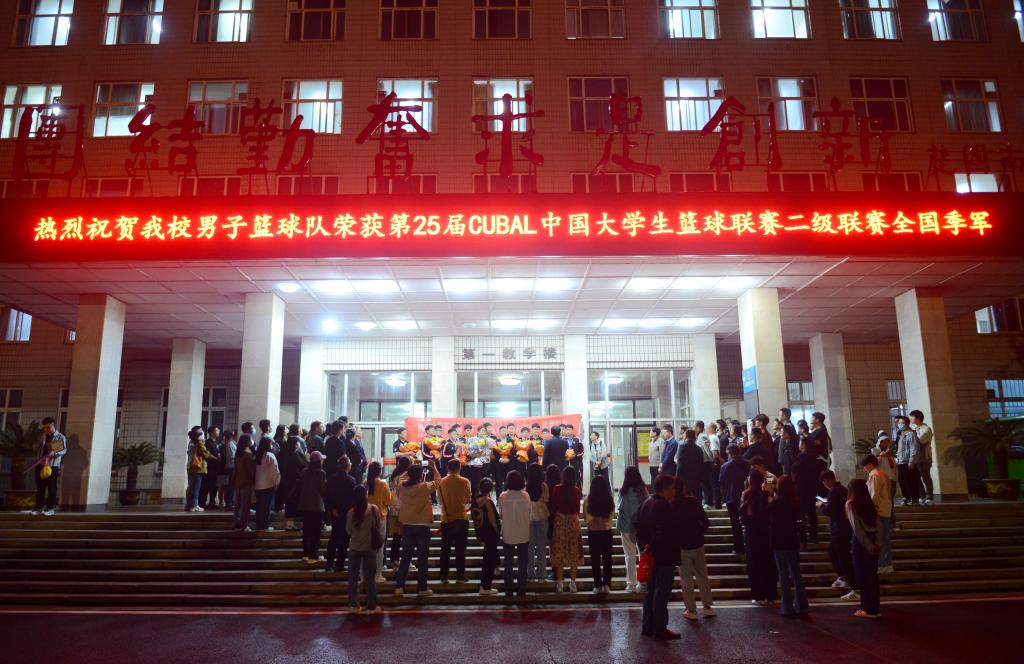 第25屆中國大學生籃球二級聯賽全國總決賽近日落下帷幕,我校男子籃球隊首次參賽便創紀錄地獲得全國季軍。5月25日晚,學校在雁塔校區為載譽歸來的西石大男籃舉行了簡單而隆重的歡迎儀式,校長李天太、黨委副書記張木、副校長陳軍斌出席,儀式由張木主持。
