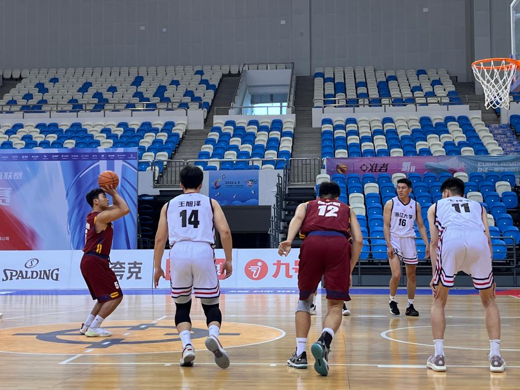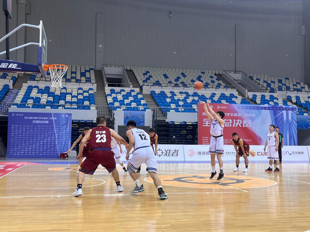 在全國賽小組賽中,首場面對南區球隊安徽理工大學。首次面對南方球隊小、快、靈的打法,我方隊員強硬防守、耐心進攻,由于地理位置原因,首發隊員們很快出現了體力不支等情況,主教練迅速調整陣容,給予休息,隊員們咬牙堅持拼搏,始終保持著領先的優勢,最終以98:78的比分戰勝安徽理工大學,首戰告捷。5月20日我校迎來第二場小組賽,對陣曾兩次獲得全國總冠軍的中國刑事警察學院。開局面對對方全場緊逼,五上五下的戰術,我校隊員咬緊牙關、穩扎穩打,上半場結束時雙方比分膠著,下半場我校隊員手感火熱,率先進入節奏,打出一波小高潮,最終以71:48大比分戰勝中國刑事警察學院。5月21日我校迎來小組賽第三場比賽,對戰南區冠軍浙江大學。上半場比賽雙方難舍難分,以平局結束。下半場,我校隊員狀態回暖,連續三分出手,多次打成二加一,逐漸拉開分差,最終以79:64戰勝南區冠軍浙江大學。我校以小組賽全勝的優異戰績出線,晉級到后續的淘汰賽中。