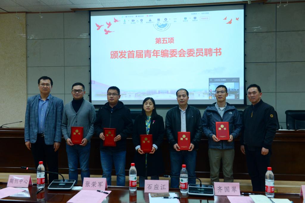 會上,審議通過了《〈西安石油大學學報(自然科學版)〉青年編委會章程》。期刊中心副主任張馨宣讀了《關于成立〈西安石油大學學報(自然科學版)〉青年編委會的決定》,并宣讀了首屆青年編委會委員名單。石應江和張益為線下參會的青年編委頒發了聘書。長江大學紀國法副教授和西安石油大學王瑞飛教授代表青年編委作了交流發言。