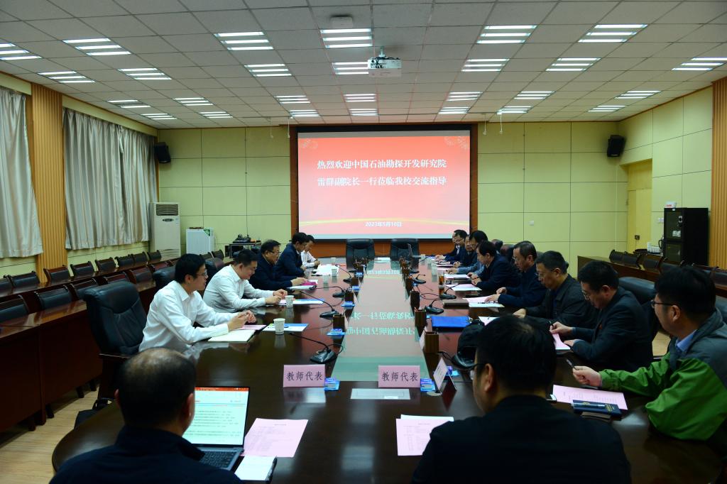 5月10日下午,中國石油勘探開發研究院副院長雷群一行5人來校開展合作交流。會議在雁塔校區會議中心第一會議室召開,校長李天太出席會議,副校長張榮軍主持會議。