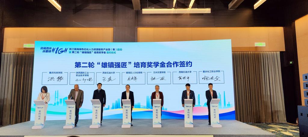 4月25日,我校受邀參加“奔甬而來·浙里鎮High”浙江鎮海綠色石化人力資源服務產業園(籌)啟動暨第二輪“雄鎮強匠”培育獎學金簽約儀式。學生工作部(處)部(處)長、就業指導中心主任王亮帶隊出席并代表學?,F場簽約。