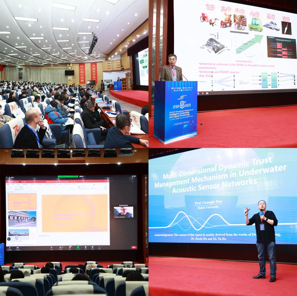 本次國際會議共舉辦8個大會報告、8個邀請報告、500余個口頭報告和海報報告。大會主講環節由我校計算機學院程國建教授主持,特邀IEEE Fellow、美國機械工程師協會會士ASME Fellow、西安交通大學嚴如強教授,IEEE Fellow、之江實驗室馬建國教授,IEEE Fellow、悉尼大學李永會教授,IEEE Fellow、河海大學韓光潔教授,國家特聘專家、電子科技大學袁曉軍教授,香港大學電氣電子工程系胡奕聰副教授,ACM杰出科學家、ACM SIGMM主席、IAPR研究員IEEE高級會員、佛羅倫薩大學Alberto Del Bimbo教授,IET Fellow、IETE Fellow、IACSIT Fellow、挪威諾羅夫大學Seifedine Kadry教授等知名專家學者,圍繞學科前沿話題做精彩學術報告,現場專家學者積極參與,交流氛圍熱烈。