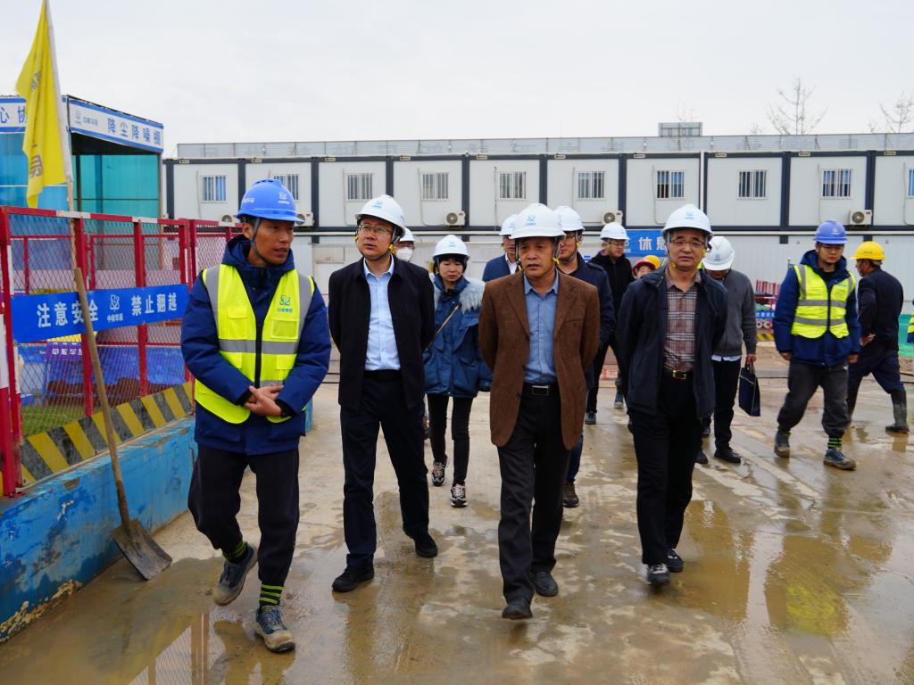 楊戰社一行參觀考察了中核華辰承建的西咸新區第一高級中學項目。施工現場,楊戰社一行仔細聆聽了相關負責人對該項目的介紹,并與該項目主要部門負責人就有關問題進行了深入交流和探討。