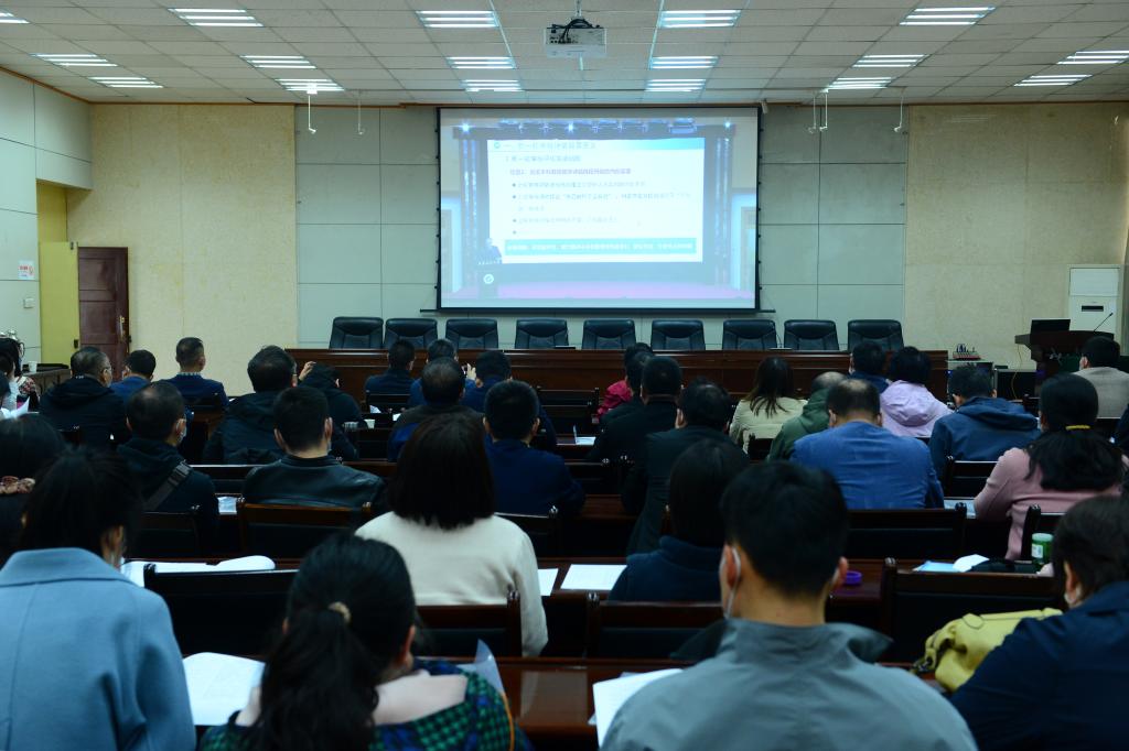 副校長陳軍斌從新一輪本科教育教學審核評估背景出發,詳細解讀了新一輪審核評估新變化、新要求及指標內涵,對學校迎接新一輪教育教學審核評估工作作了詳細部署和安排。他重點強調,新一輪本科教育教學審核評估聚焦立德樹人成效,是落實新時代教育評價改革和教育督導體制機制改革的重要舉措,是構建中國特色高等教育質量保障體系的緊迫任務。2024年上半年,學校將接受陜西省教育廳組織的本科教育教學審核評估,本次教育教學審核評估類型為第二類第一種,即重點以學術型人才培養為主要方向的普通本科高校。接受本科教育教學審核評估工作是學?!笆奈濉逼陂g一項極其重要的工作,全校上下要高度重視,提高認識,加強領導,分工協作,凝心聚力,扎實推進本科教育教學審核評估工作。