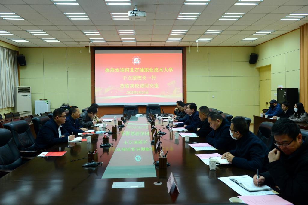 于立國對我校的熱情接待表示感謝,并介紹了河北石油職業技術大學的歷史沿革和辦學基本情況。他表示,今年正值河北石油職業技術大學建校120周年之際,希望以此次交流為契機,不斷鞏固和深化兩校之間的友誼,相互借鑒、取長補短,實現以交流促發展的美好愿景,共同推進兩校各項事業高質量發展。
