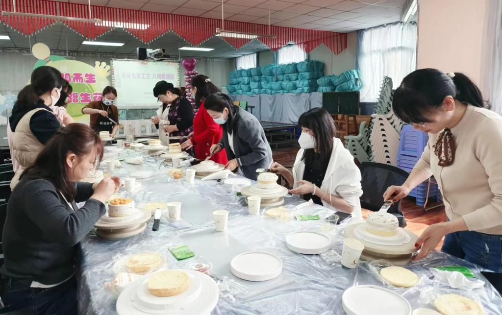 為豐富女教職工的節日生活,提升女教職工的幸福感,活躍身心、增進感情,營造溫馨的文化氛圍,3月7日上午,機關七工會組織女職工DIY蛋糕活動,自己動手制作蛋糕,以“烘焙”活動的方式慶?!叭恕眹H勞動婦女節。同時為女工們準備了美麗的花束,為大家送上節日的祝福。