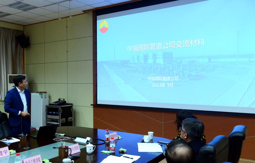 中油國際管道有限公司發展計劃部、黨群工作部(黨委宣傳部、企業文化部)、人力資源部有關負責人,我校教務處、研究生院、國際交流與合作處、石油工程學院、電子工程學院、材料科學與工程學院、計算機學院、土木工程學院、經濟管理學院、國際教育學院(絲路能源學院)負責人參加座談會。