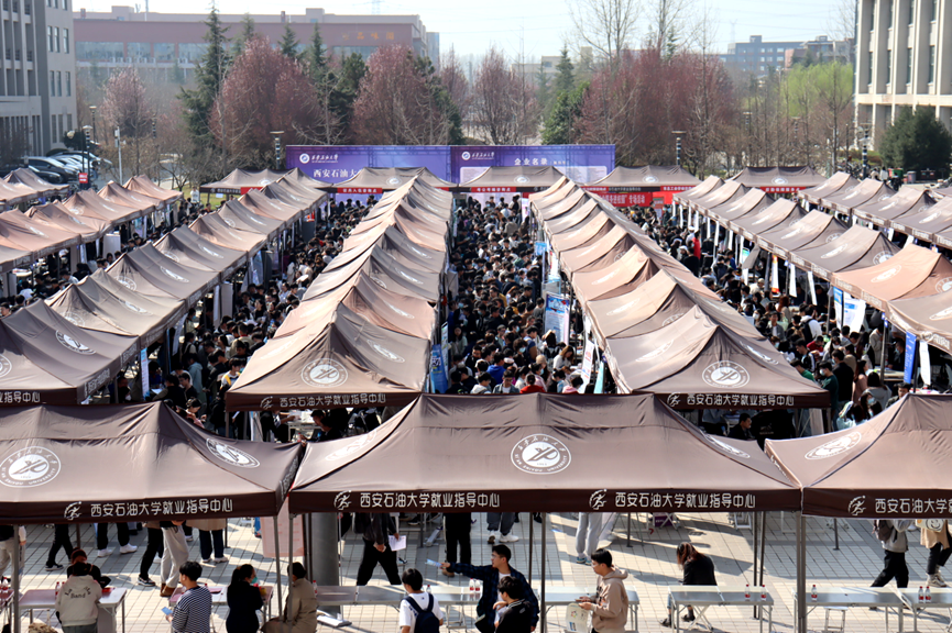 3月10日上午,我校2023屆畢業生春季校園招聘系列活動暨“訪企拓崗、萬企進?!笔讏鼍C合雙選會在鄠邑校區圖書館南廣場成功舉辦。中國石油天然氣第六建設有限公司、陜西陜煤榆北煤業有限公司、陜西建工集團股份有限公司、陜西隆基樂葉光伏科技有限公司、南通市海門區企業組團等312家單位進校招聘,我校及兄弟院校畢業生共計6000余名畢業生參加招聘會。