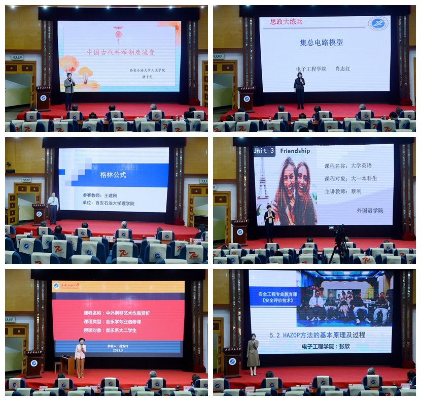 為深入學習貫徹黨的二十大精神,認真落實習近平總書記在學校思想政治理論課教師座談會上的重要講話精神,充分發揮課堂教學主渠道在高校思想政治工作中的作用,扎實深入推進學校課程思政建設工作,3月10日,我校思政課教師“大練兵”課程思政組展示活動決賽在雁塔校區學術報告廳舉行。活動特邀請陜西師范大學教育學部傅鋼善教授,西北工業大學數學與統計學院孫浩教授、西北大學高等教育研究中心姚聰莉教授、西北工業大學馬克思主義學院賀苗教授、西安科技大學馬克思主義學院張銘鐘教授5位專家擔任評委。校長李天太、校黨委副書記張木、副校長陳軍斌出席活動,宣傳部、學生工作部、教師工作部、人事處、教務處、高教研究與評估中心及各院(系)主要負責人,學校各專業負責人、一流本科課程負責人、課程思政示范課團隊成員及青年教師代表到場觀摩?;顒佑申愜姳笾鞒?。
