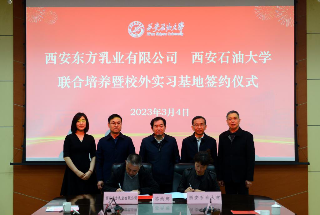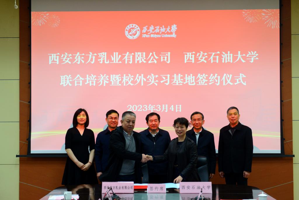 會上,還舉行了西安東方乳業有限公司和西安石油大學聯合培養暨校外實習基地簽約儀式。西安東方乳業有限公司總經理丁建平和經濟管理學院院長王君萍代表雙方簽約。學校將以本次校企合作簽約為契機,認真落實合作協議相關內容,以校企合作、產教融合為突破口,積極發揮學校人才優勢和專業優勢,扎實推進校企在科學研究、人才培養、學術交流和教學實踐等方面開展多層次、多形式、多領域的深度合作、互利共贏。