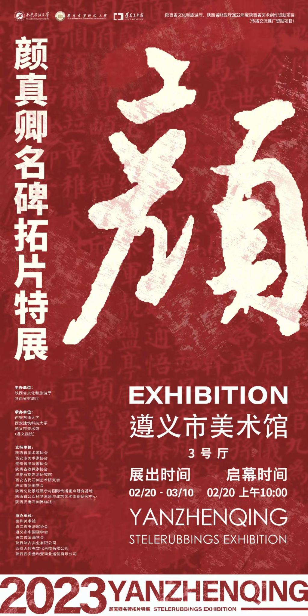 2月20日上午,由陜西省文化和旅游廳、陜西省財政廳主辦,西安石油大學、遵義市美術館(遵義畫院)聯合承辦的“書以載道 文以鑄魂——顏真卿名碑拓片特展”在遵義市美術館(遵義畫院)開幕。
