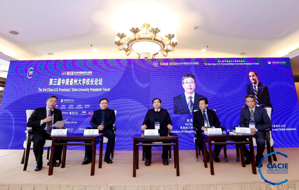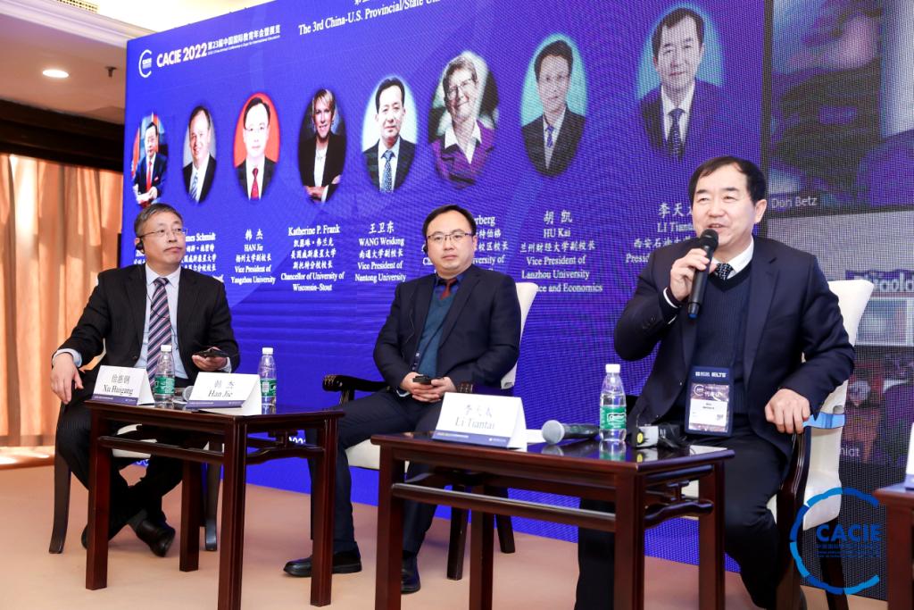 作為本屆年會的重要組成部分,第三屆中美省州大學校長論壇以線上+線下形式舉行,來自170多所中美高校的代表出席,邀請中美12所高校的校長作為發言和研討嘉賓。我校校長李天太是陜西高校唯一特邀論壇嘉賓。論壇主題為探索中美省州大學產教融合新模式,提高國際化人才培養質量,服務地方經濟社會新發展。論壇研討內容包括以中美學分互認、學位聯授項目為基礎,以國際化人才培養為紐帶,構建高水平、寬領域、可持續的中美省州高校合作交流平臺。通過教育國際交流打造適應國家發展需求的新工科、新農科、新商科等高質量專業學科群,建設具有國際化水平的師資隊伍,加強中美高校之間學術科研合作,通過產教融合模式強化合作共贏理念,推進中美省州高校教育交流、人才培養、校企合作、科研合作、人文交流等,為地方經濟社會發展服務。