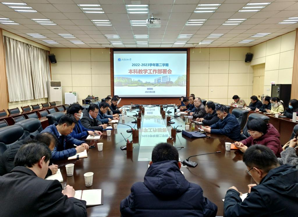 陳軍斌指出,各教學單位要按照學校春季開學工作的總體要求,扎實做好新學期各項教學準備工作,進一步細化春季學期本科教學工作任務,確保各項工作平穩有序進行。他強調,一是各院(系)要高度重視上學期課程考核工作,結合學生上學期學習實際,精心組織開展線下串講和輔導答疑,合理安排公共課程和專業課程考試,同時加快進度補足補齊實驗實習等實踐教學環節,確保各項教學工作高質量完成。二是加強招生宣傳與錄取工作,招生工作是立德樹人的起點,優質生源是人才培養質量的基礎,要不斷創新工作思路,豐富宣傳方式,強化生源基地建設,總結凝練專業特色與人才培養成效,增強學校影響力,提升宣傳實效,貫徹招生宣傳永遠在路上的理念。三是深化教育教學改革,聚焦本科教學核心指標,督導檢查教改項目落實進度,強化一流專業建設,以課程建設為突破口,積極籌備一流課程申報,全面推進課程思政建設,打造優秀課程教學團隊,加強一流教材申報與建設,提前謀劃精準施策,統籌做好申報各環節工作,持續推進工程教育專業認證工作,加強實驗教學平臺建設,著力培育高水平教學成果,推動本科教育高質量發展。四是圍繞新一輪本科教育教學審核評估指標體系,制定學校工作體系和實施方案,扎實做好基礎數據統計工作,對標對本籌備自評報告,提出問題清單,組織學習審核評估指標體系,查缺補漏著手準備基層教學資料歸檔工作。五是以審核評估指標體系為依據,做好教學經費預算,全力保障實驗室建設、教學日常運行及教學資源條件,同時保證經費投入的合理性、使用的有效性以及管理的規范性。六是扎實推進師德教風建設,牢固樹立教師師德底線意識,嚴肅教風教紀,愛業愛生,身體力行,爭做“德高為師,身正為范”以及“四有”好老師。七是各級教學管理人員要嚴于律己,加強學習,以身作則,提高教學管理水平,增強統籌協調、系統謀劃能力,做到“勤思考、勤動手、勤動嘴、勤動腿”,深入課堂一線,深入基層教學組織,善于在細微處發現問題解決問題,以高效的教學管理促進教學質量有力提升。