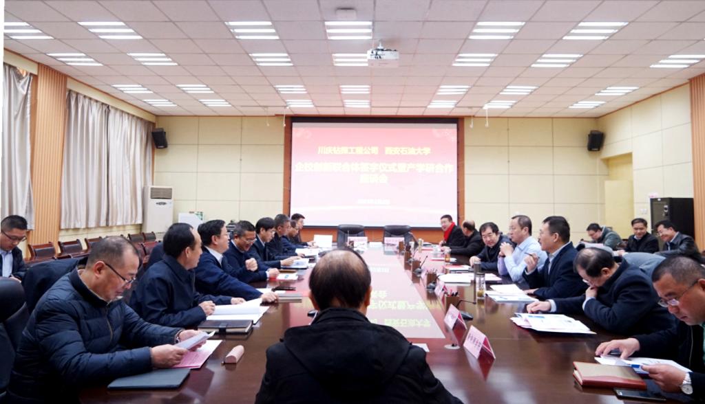 會上,張榮軍代表學校與川慶鉆探工程有限公司簽訂了企校創新聯合體“致密油氣藏勘探開發研究中心”共建協議,李天太和孫虎共同為研究中心揭牌。川慶鉆探介紹了公司生產技術需求,我校匯報了優勢特色技術。雙方圍繞深化校企合作、人才培養、科技創新及成果轉化等進行了座談交流。