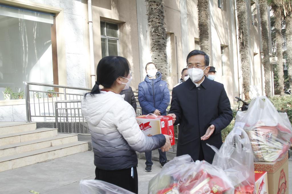 1月19日上午,在新春佳節來臨之際,校黨委副書記張木、副校長蘇文甫帶領工會全體同志分別在雁塔校區和鄠邑校區慰問了保衛處、后勤處、校醫院以及假期值班堅守在一線工作崗位上的部分教職工,帶去了學校對他們的關懷和慰問。