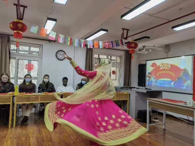 活動現場,除了學習書寫“福”字,留學生還準備了各具特色的歌舞節目。來自俄羅斯的愛麗同學為大家傾情獻唱中文歌曲“人間”,阿尤娜同學為大家表演了印度舞蹈“游子回家”,來自赤道幾內亞的諾一同學為大家獻上了非洲傳統舞蹈Afro-Dance,現場展現出校園多元文化、師生共慶中國新春喜氣祥和的氛圍。