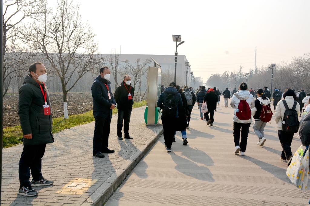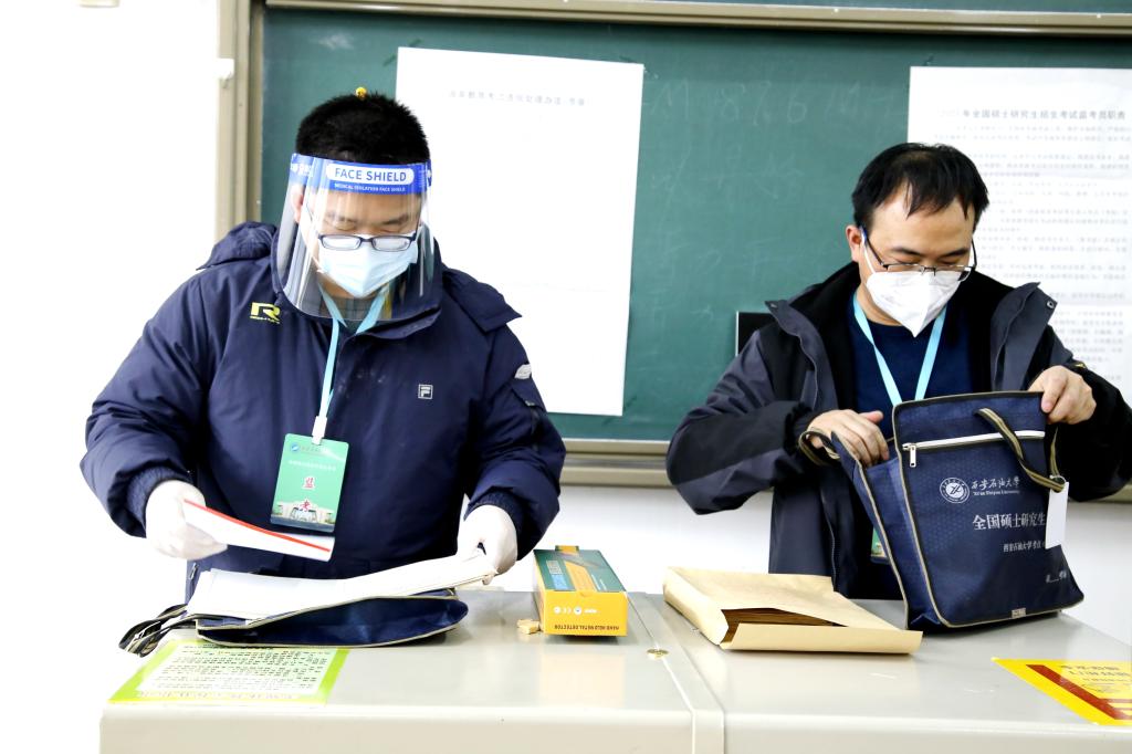 學校職能處室負責人積極投身研考一線,測溫、掃碼......院系書記、院長、教授等化身“搬運工”,積極為監考老師做好后勤保障工作,作為“替補”隨時上考場;鄠邑校區所在地方政府也全力配合學校工作,西安市公安局鄠邑分局負責押送試卷,安排警察在學校門口執勤;區教育局安排醫護人員帶著救護車隨時待命。大家的工作目標只有一個,全時守護守候參加研究生考試的學子。
