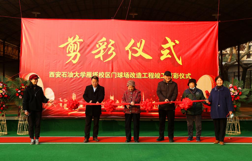 12月9日下午,我校門球協會舉行雁塔校區門球場改建工程竣工剪彩儀式。副校長蘇文甫、陜西中雋建設工程有限公司總經理水山等出席竣工剪彩儀式。離退休工作處負責人、施工方代表、門球協會代表共同剪彩。