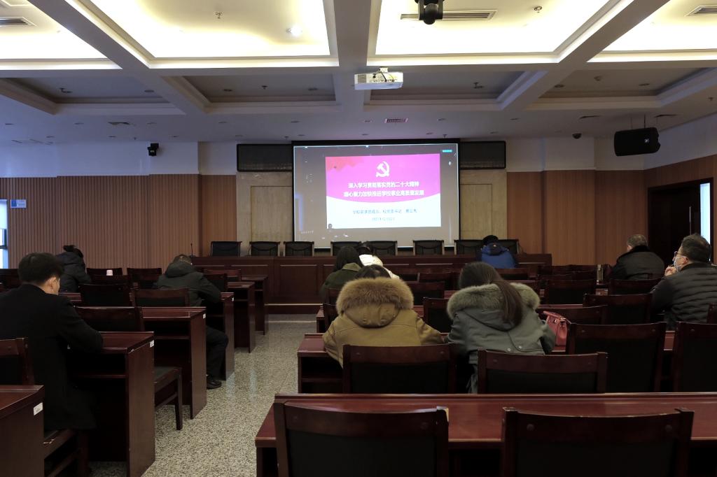 賽云秀指出,黨的二十大是在全黨全國各族人民邁上全面建設社會主義現代化國家新征程、向第二個百年奮斗目標進軍的關鍵時刻召開的一次十分重要的大會。學習宣傳貫徹黨的二十大精神是當前和今后一個時期學校的首要政治任務。全校上下要全面準確學習領會黨的二十大精神,深刻領悟“兩個確立”的決定性意義,增強“四個意識”、堅定“四個自信”、做到“兩個維護”,自覺用黨的二十大精神統一思想和行動。