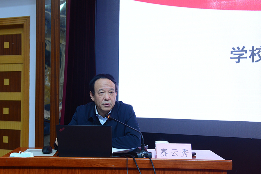 12月2日下午,學校以線上線下相結合的方式,舉行學習貫徹黨的二十大精神宣講報告會。學習貫徹黨的二十大精神學校宣講團成員、校黨委書記賽云秀作宣講。會議由校黨委副書記、校長李天太主持。