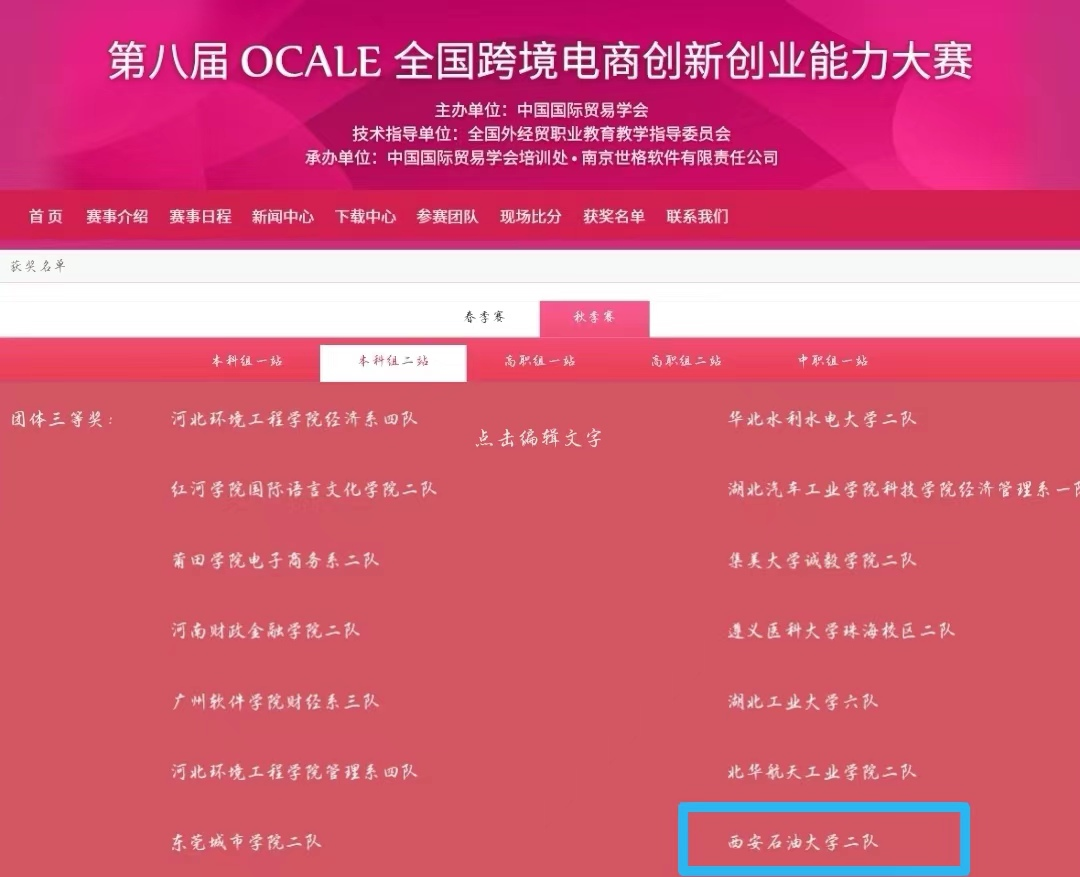 11月19日,第八屆OCALE全國跨境電商創新創業能力大賽落下帷幕。由我校經濟管理學院電子商務專業學生鹿恪迪、成宇陽、閆楓珊組成的參賽團隊,在趙需要老師的指導下,披荊斬棘,歷經3天12個回合比賽,勇奪全國團體三等獎。