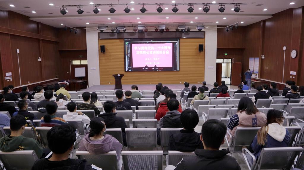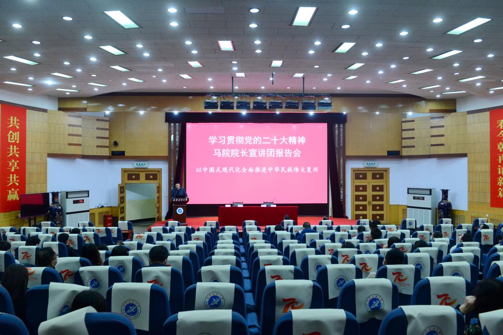 雷西合在主持報告會時指出,報告主題鮮明、內容充實、準確深刻,政治性、思想性、針對性、指導性強,對全面學習把握黨的二十大精神是一次深入輔導和有力推動。他強調,學習好、宣傳好、貫徹好黨的二十大精神是學校當前和今后一個時期的首要政治任務。廣大師生要落實習近平總書記“三個全面”的總體要求,在全面學習、全面把握、全面落實上下功夫。一要進一步提高政治站位,原原本本學習研讀黨的二十大報告和新修訂的黨章,準確領會精神實質和核心要義,深刻領悟“兩個確立”的決定性意義,增強“四個意識”、堅定“四個自信”、做到“兩個維護”。二要堅定理想信念,勇挑時代重擔,珍惜美好時光,練就過硬本領,既懷抱夢想又腳踏實地,學用結合、知行合一,把個人理想追求融入民族復興偉大征程。三要注重發揮優勢,思政隊伍、學工干部和師生黨員要充分發揮專業優勢、工作優勢和生活優勢,做好黨的二十大精神的宣傳宣講工作,堅定推動學習宣傳貫徹黨的二十大精神走深走實,見行見效,助力學校各項事業高質量發展。