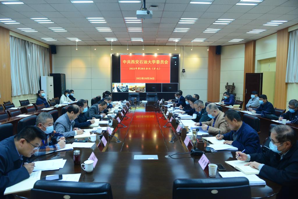 10月26日下午,校黨委(擴大)會暨黨委理論學習中心組2022年第14次學習會在雁塔校區會議中心第二會議室、鄠邑校區圖書館第一會議室同步召開,傳達學習黨的二十大、黨的二十屆一中全會精神,傳達學習省委常委會(擴大)會議精神,對全校學習宣傳貫徹黨的二十大精神作出安排部署,會議強調,全校上下要深入學習宣傳貫徹黨的二十大精神,努力推動學校各項事業高質量發展。校黨政領導賽云秀、李天太、李延平、張木、楊戰社、陳軍斌、李華、程永清、張榮軍、樊曉民,黨委理論學習中心組成員,各院(系)級單位黨組織書記參加會議。會議由校黨委書記賽云秀主持。