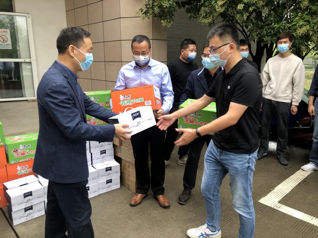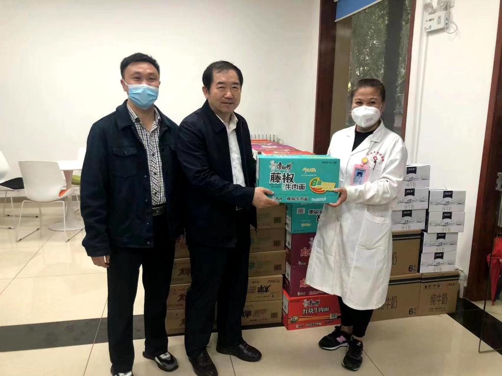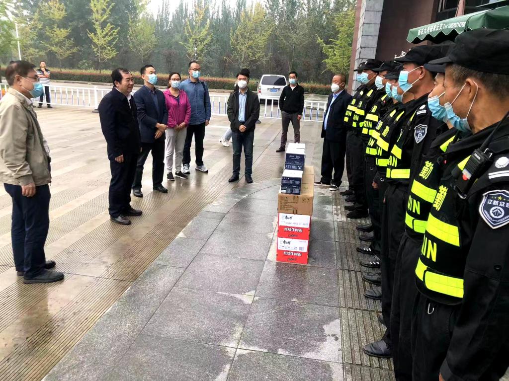慰問過程中,李天太、雷西合、機關黨委和工會負責人為各院(系)、機關、后勤、保衛、物業等單位的值班人員發放了牛奶、方便面、餅干等慰問物資。