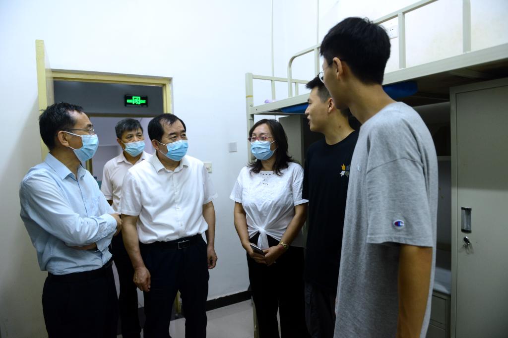 督導組按照工作分工,分組深入學生宿舍、學生食堂、隔離區、校醫院、取水間、商業街、迎新現場等重點區域,通過現場察看、查閱資料、了解問詢等形式,對學校疫情防控、傳染病預防、校園安全、意識形態工作責任制、教育評價改革、突出問題專項治理、思政課教師和輔導員配備、綠色學校創建、師德師風三年行動、法治教育、高校教育事業統計及網信工作等方面工作的落實情況進行了全面督查,對發現的問題現場指導并提出具體整改意見。