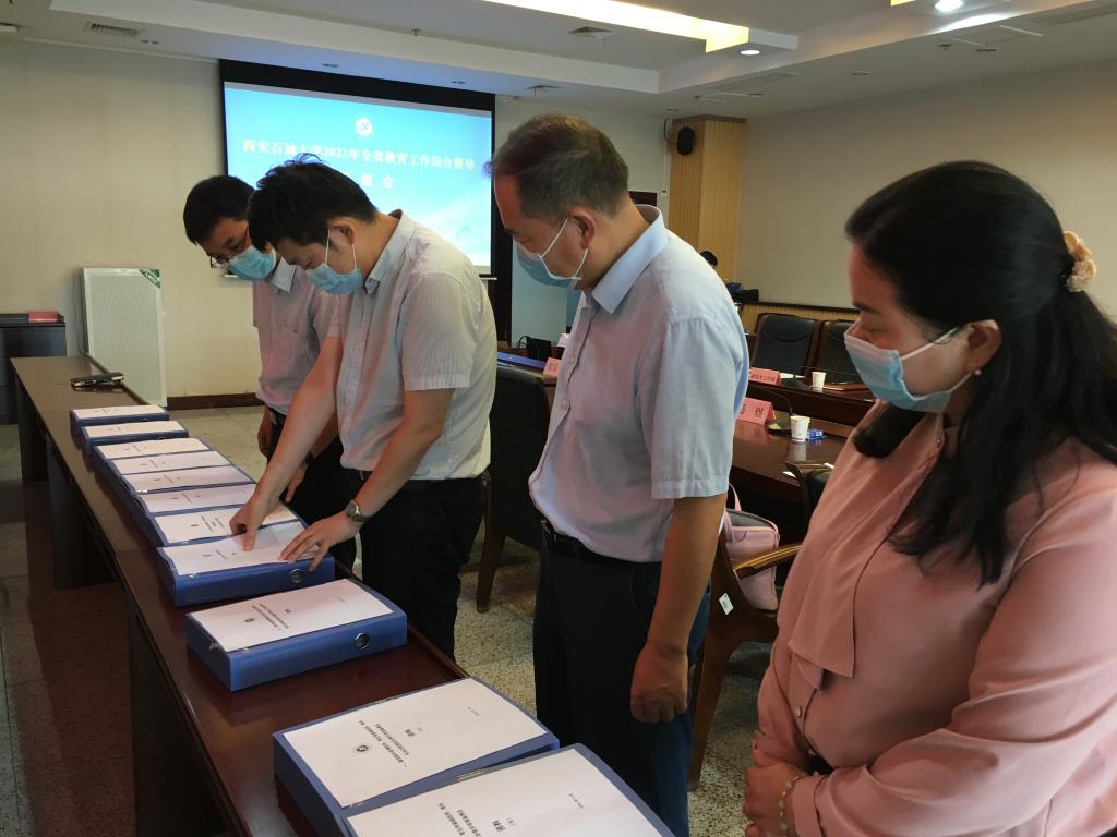 9月15日上午,陜西省教育工作綜合督導高校第七組組長、省委教育工委、省教育廳二級巡視員關荷,成員西安市市場監管局專家寇安霞、長安大學網信專家李坤倫、陜西省結核病防治研究所主治醫師馬煜等一行8人來校開展2022年教育工作綜合督導。督導對接見面會在鄠邑校區圖書館第一會議室舉行,校長李天太、副校長楊戰社出席見面會。見面會由校黨委副書記張木主持。