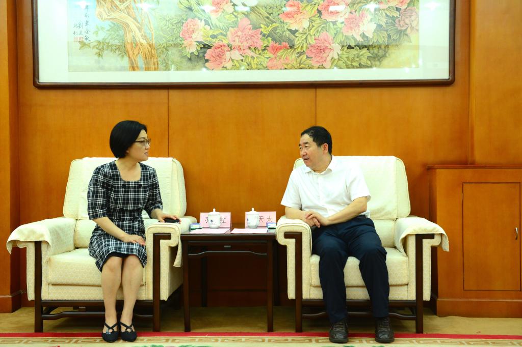 校長李天太在對接會前會見了孫紅一行。李天太首先對孫紅一行來校進行交流合作表示熱烈歡迎,進而高度評價了江蘇省建湖縣與我校建立戰略合作伙伴關系以來所取得的成就,并就建湖縣給予學校各方面工作的大力支持和幫助表示感謝。李天太指出,希望通過此次座談和產學研合作協議的簽署,進一步加深雙方合作,積極推進產學研合作、提高人才培養水平、加快科技協同模式創新,共同實現校政企合作的共贏目標。